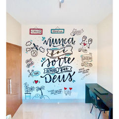Minha paixão pelo lettering se traduz em projetos de lettering digital e hand lettering (feito à mão). Para personalização em diversas superfícies: seja em paredes, quadrinhos, canecas, caixas, etc.